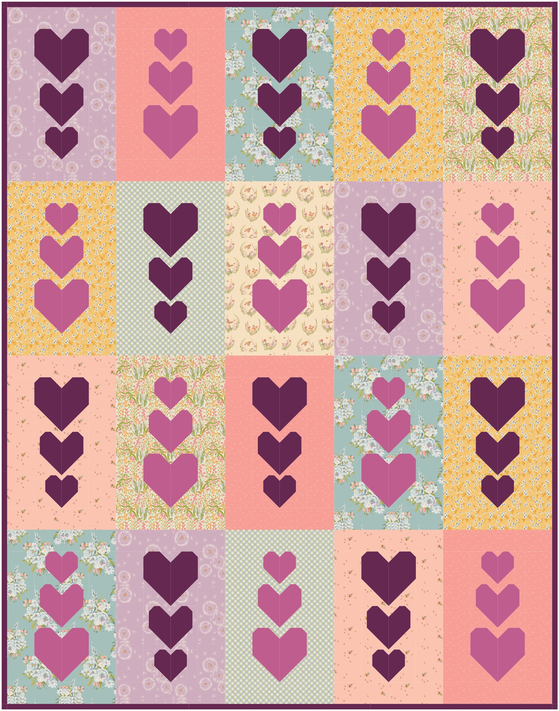 The cover quilt was mocked up with Funny Valentine by Lizzy House for Moda Fabrics.