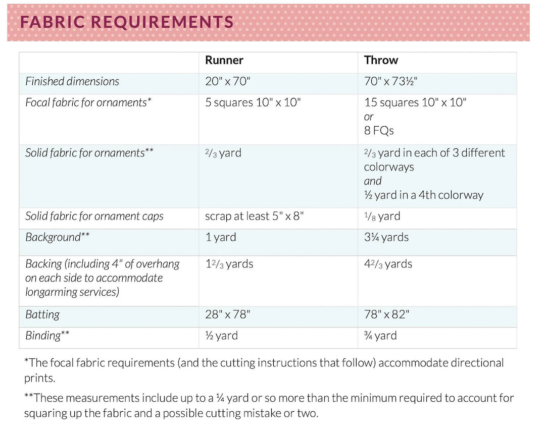 Do you like big blocks? Ornament Collection will not disappoint! Its oversize ball and bauble blocks sew up fast. For an even quicker finish, use precut 10-inch squares—a 42-piece bundle of them can provide enough focal fabric for two throws *and* two runners!